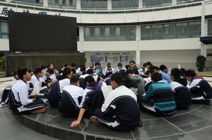 备课时,於老师认为这篇课文前半部分所描写的场景,如“此地有崇山峻岭,茂林修竹;又有清流激湍,映带左右”、“虽无丝竹管弦之盛”、“亦足以畅叙幽情”、“天朗气清,惠风和畅”……,均可在这官龙山下的西丽校园还原。为了让学生更好地乃至身临其境地深入体会作者情思以及写作运思的过程,於老师决定让学生出去上这堂课。这一提议得到了学生们的热烈响应,他们的积极性比老师还高。