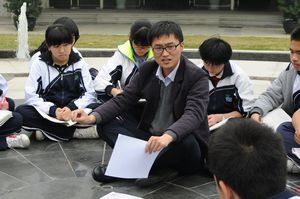 年轻的於胜成老师积极探索语文教学的新路径,希望能够在激发学生学习兴趣、传授汉语语言文学知识之余,让学生获得文学与人生的审美体悟。正是这一初衷促成了他在教学方式上的思考和创新,这天的室外语文课就是其产物之一。