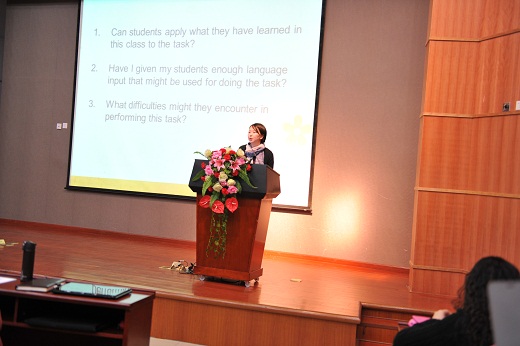 在专家点评环节中,专家们认为这四位执教老师都运用了“适用、适量、适度”的教学方法,基本上都体现了“为思维而教”的教学原则,教学设计极具特色,课堂容量大,词汇广度大;对文本处理细腻,“flow chart”的设计更是别具一格,很好地培养了学生的归纳能力;利用词汇导入加强了学生对文本的理解。