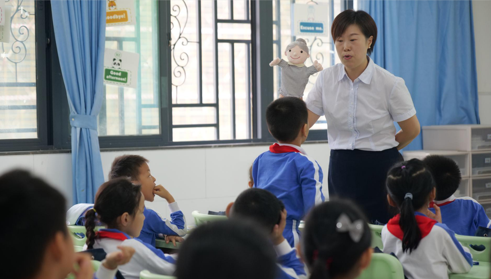 小学部邵琼老师以一首“My family ”引出本节课主题——My family。熟悉的旋律唤起学生的记忆,欢快的节奏调动起了课堂气氛,邵老师借助手偶与第一次见面的同学们拉近了距离。在教学过程中,周老师通过图示和谜语的方式引出father,mother,grandmother和grandfather四个单词,环环相扣,设计巧妙。“找单词”的游戏环节更是激发了学生的兴趣,将课堂气氛推向高潮。邵老师还充分利用chant、肢体语言和教具进行单词与句型的操练,使教学内容简洁清晰又形象生动,帮助学生快速理解、顺畅表达,让学生愉快地投入到语言学习与运用的情境中,自然而然地提高了听、说、读等语言运用能力,从而达到教学目的。