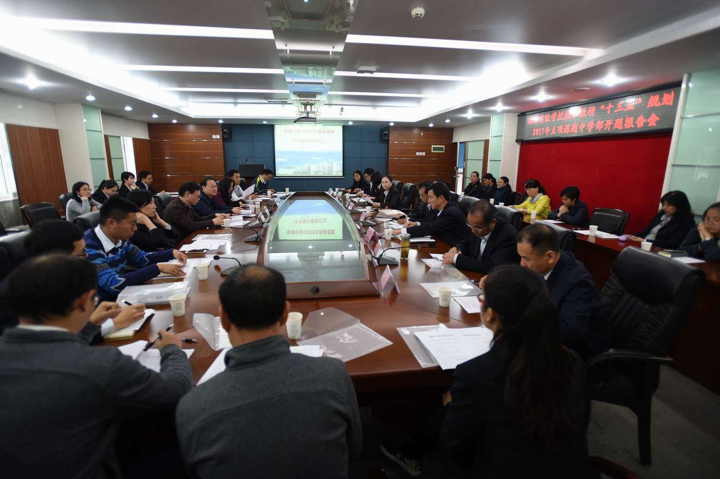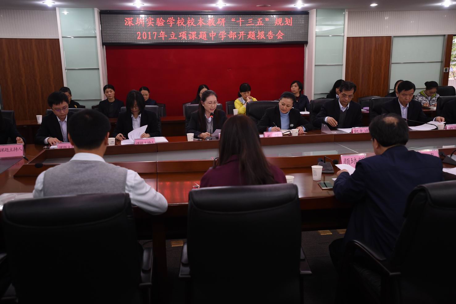2018年1月19日下午4:00,深圳实验学校中学部校本教研“十三五”规划2017年立项课题开题报告会在中学部北403顺利召开。会议由王兵主任主持,深圳市教科院生物教研员颜培辉、深圳市福田教育局科技与环境教育部主任陈威、红岭中学历史特级教师、深圳市名师工作室主持人吴磊,深圳实验学校龙萍副校长、教育教学部郭志鸿主任、田国生副主任,小学部教务处主任周烈夫,以及各部的领导课题组负责人及课题组成员参加了开题报告会。