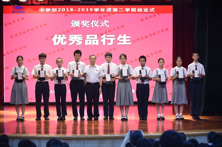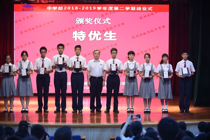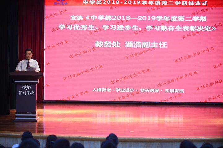 在高亢的国歌声中,结业式正式开始。首先,全体师生收看本学年中学部各项工作的总结纪录片《我们的一天》,创新的以时间轴的方式记录、回顾一学年里,关于学生管理、课堂教学、学生活动、后勤服务、工会活动等等各项工作,共同见证了实验教师的敬业专业,不断探索;共同见证了实验学子风华正茂,孜孜以求;共同见证了教辅团队和后勤服务人员的勤勤恳恳、精益求精。