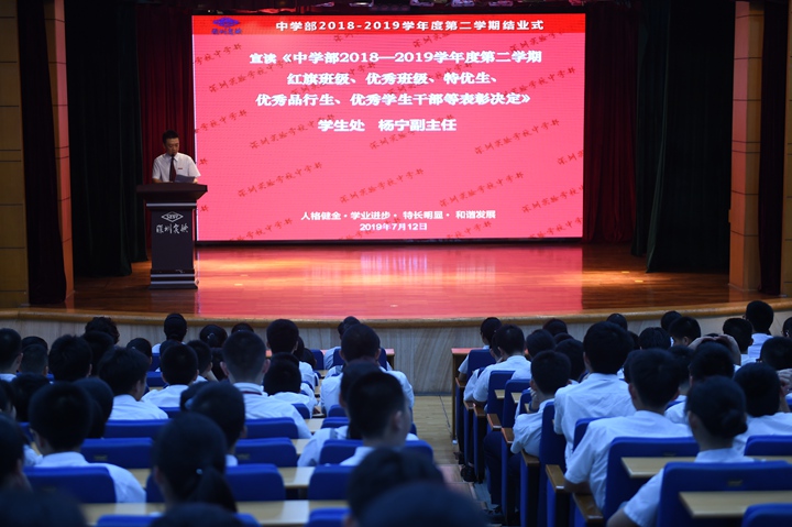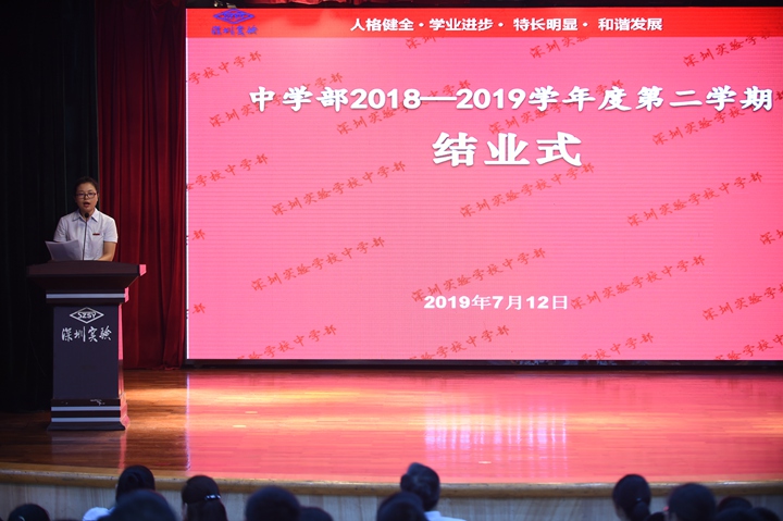 7月12日,中学部全体师生齐聚五楼小礼堂,举行2018—2019学年度第二学期结业式,共同回望忙碌而充实的工作和学习。大会由学生处高丽副主任主持。