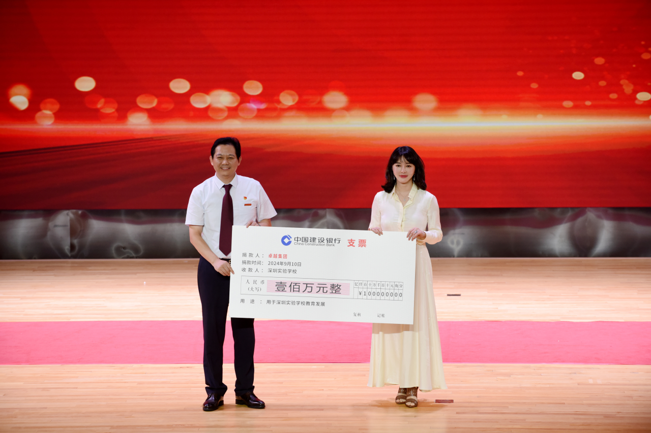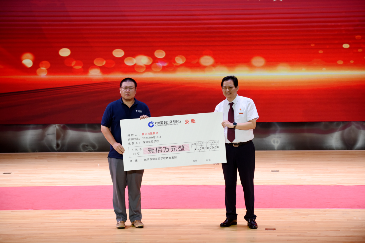 深圳实验学校自建校以来,以卓越的教育教学成绩赢得了深圳市民的广泛认可,也得到了爱心企业的慷慨捐助。当天,星河控股集团、卓越集团的爱心代表也莅临现场,宣布为我校育韵桃李教育基金各捐资100万元,共200万元。夏育华书记代表学校接受了捐赠。