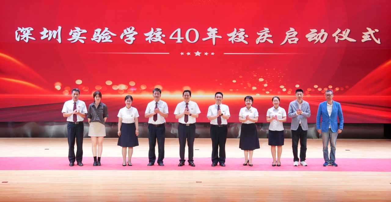 明年,深圳实验学校将迎来建校40周年大庆,在校党委的统筹谋划下,目前各项筹备工作稳步推进,并经教育局同意即将在深圳市教育发展基金会下成立育韵桃李专项基金。在热烈的掌声中,学校领导、校庆办主任、校友会代表以及深圳市教育发展基金会代表共同登台,拉开我校40周年校庆的序幕。