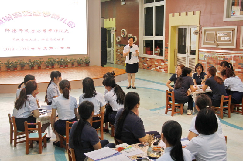 教育家陶行知先生说过:“学高为师,德高为范。”师德是教师的立师之本,师德师风建设是幼儿园教师队伍建设的核心内容。2018年10月11日下午,实验盛世幼儿园举行了以“寻找爱的足迹,讲述爱的故事”为主题的师德师风启动仪式和拜师活动。