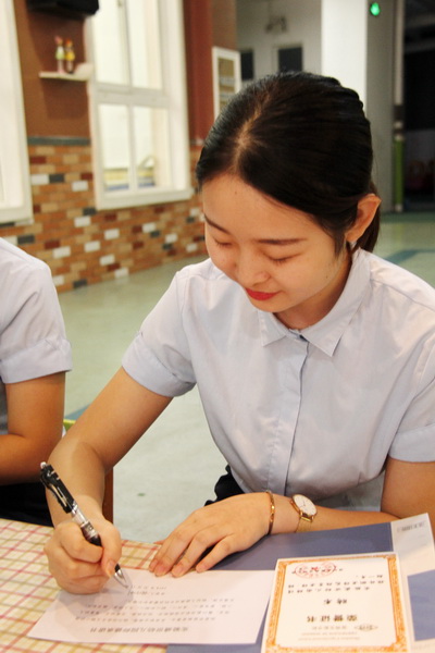 会后,老师们怀着对孩子的热爱,对岗位的珍爱,郑重的在《承诺书》上写下自己的名字,许下了爱的诺言。
