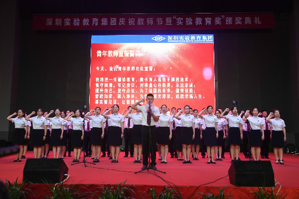2019年9月6日下午,深圳实验学校各学部教师汇聚在中学部文体馆,隆重举行庆祝第35个教师节大会暨实验教育奖颁奖典礼。大会由龙萍副校长主持。