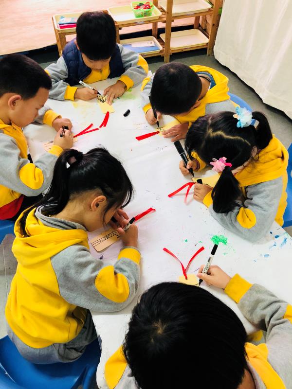 2月18日,老师带着孩子们一起自制书签,孩子们分别运用自己喜爱的方式进行绘画、装饰。小班孩子使用贴纸点缀书签、寄予福语,中班运用画笔绘画出心中的愿望,大班孩子以图文并茂的方式,使用象征符号表达祝福。