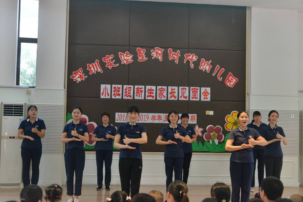 一支“溢彩飞扬”的舞蹈,老师们化身为美丽的天使,拉开了见面会的序幕。见面会上,黄园长关于幼儿园发展历程和课程理念的简要介绍、小班组全体教师的自我介绍和手语表演、中大班哥哥姐姐稚趣的舞蹈……拉近了彼此的距离,开启家园的相互联结。