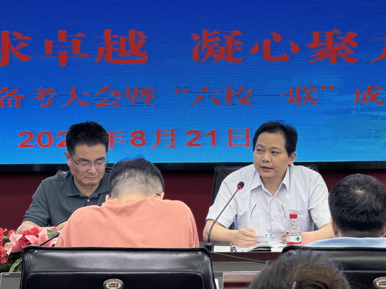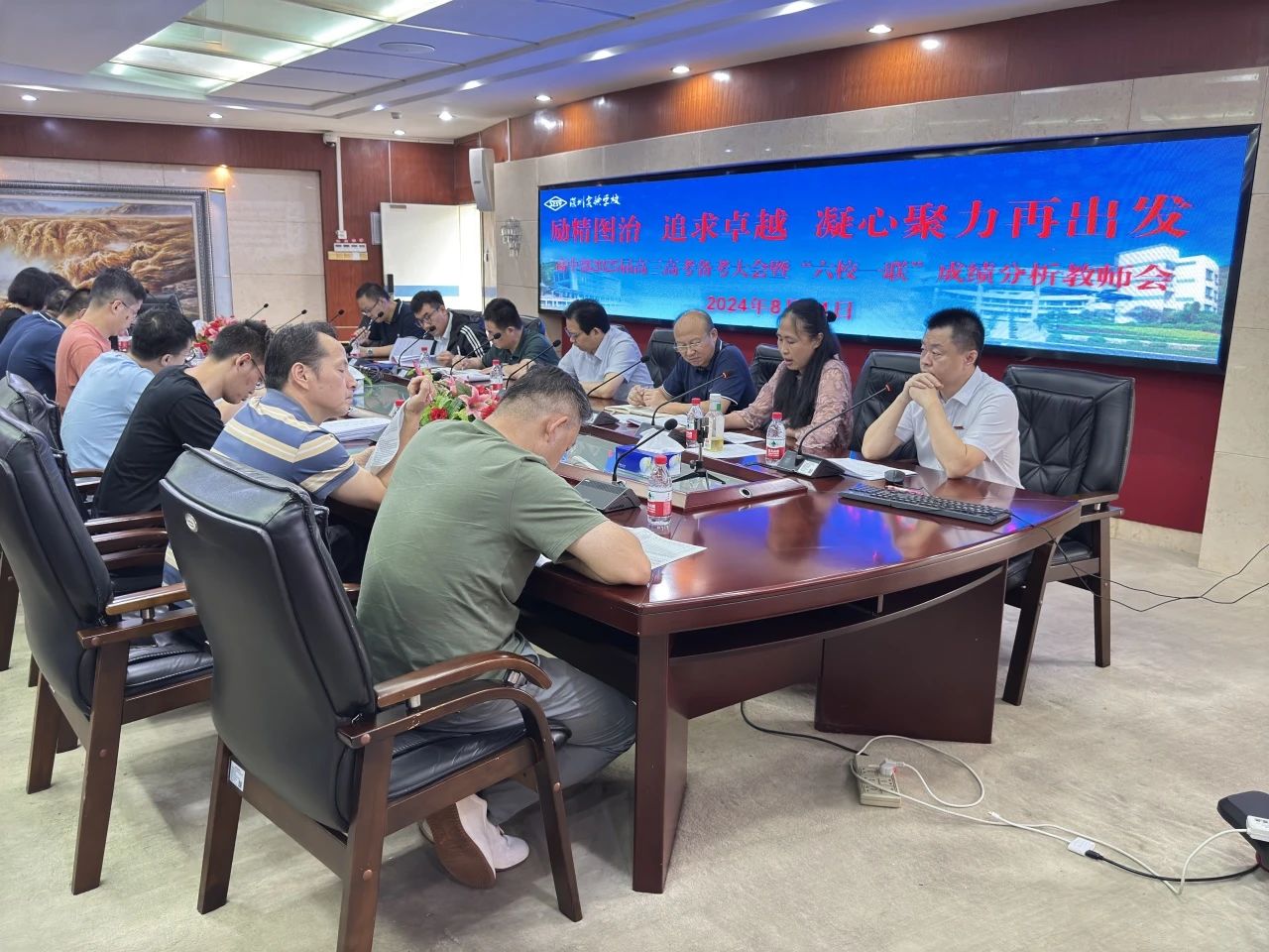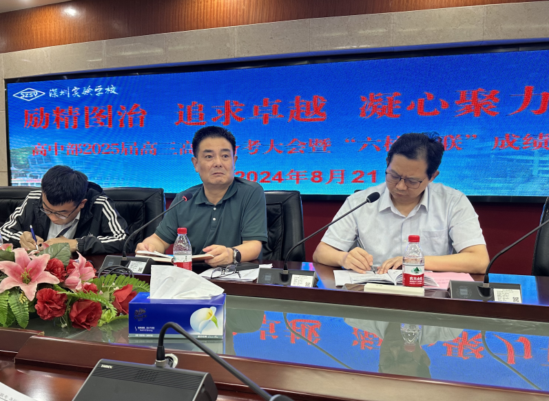 8月21日,深圳实验学校高中部召开2025届高三高考备考大会暨“六校一联”成绩分析教师会,年级主任王文悦与祁国强、英语备课组长邓少美、数学备课组长刘嘉、高三(1)班班主任徐尤清作了汇报发言,部主任助理裴绍才、教务处主任李阳提出了备考建议,校党委书记夏育华、副校长兼高中部执行校长邓旭出席会议并讲话。