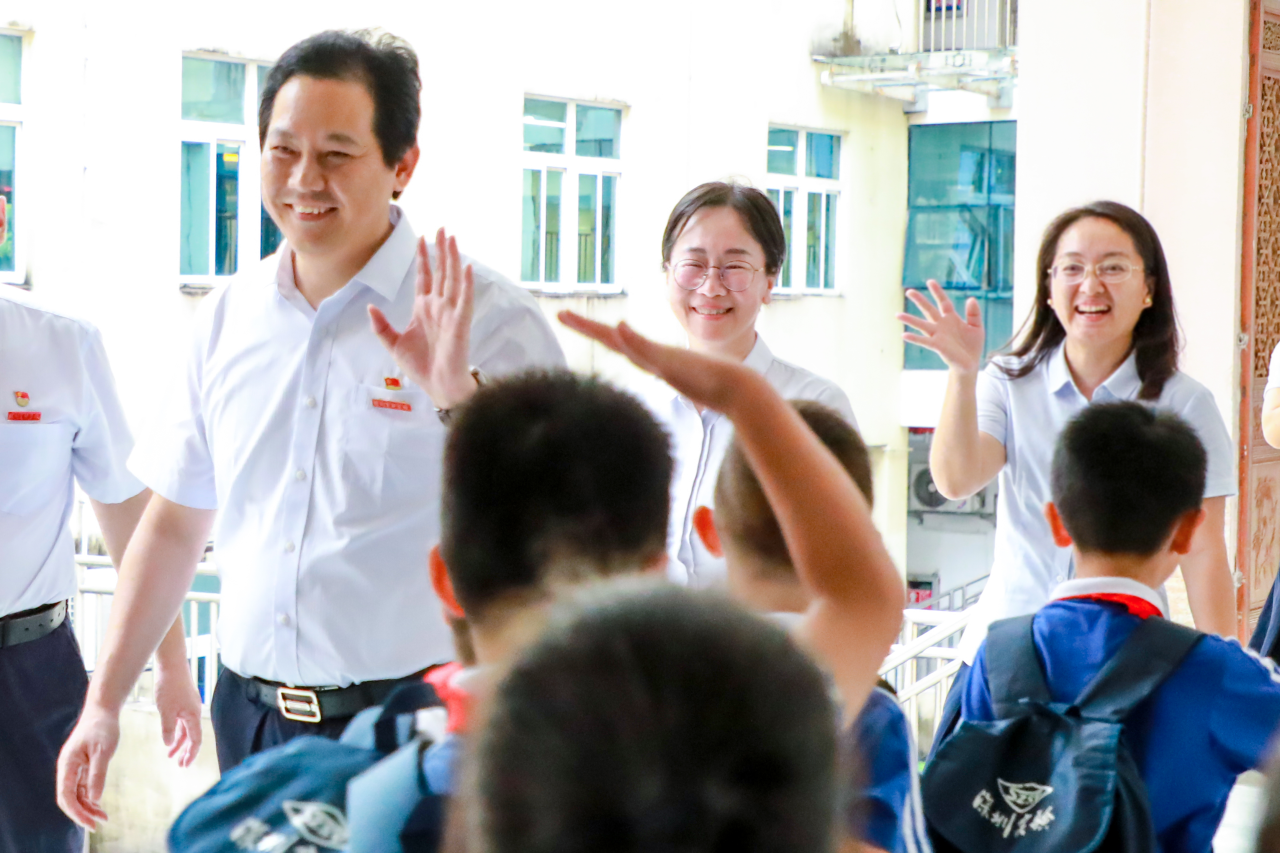 9月2—3日,深圳实验学校党委书记夏育华、副校长邓娟以及集团总部各部门行政干部一行,先后到小学部、初中部、中学部、坂田部、坪山学校、光明科林学校、光明学校调研指导开学工作,走访了各年级教室和办公室,认真查看学生上课情况,并与老师们亲切交谈。