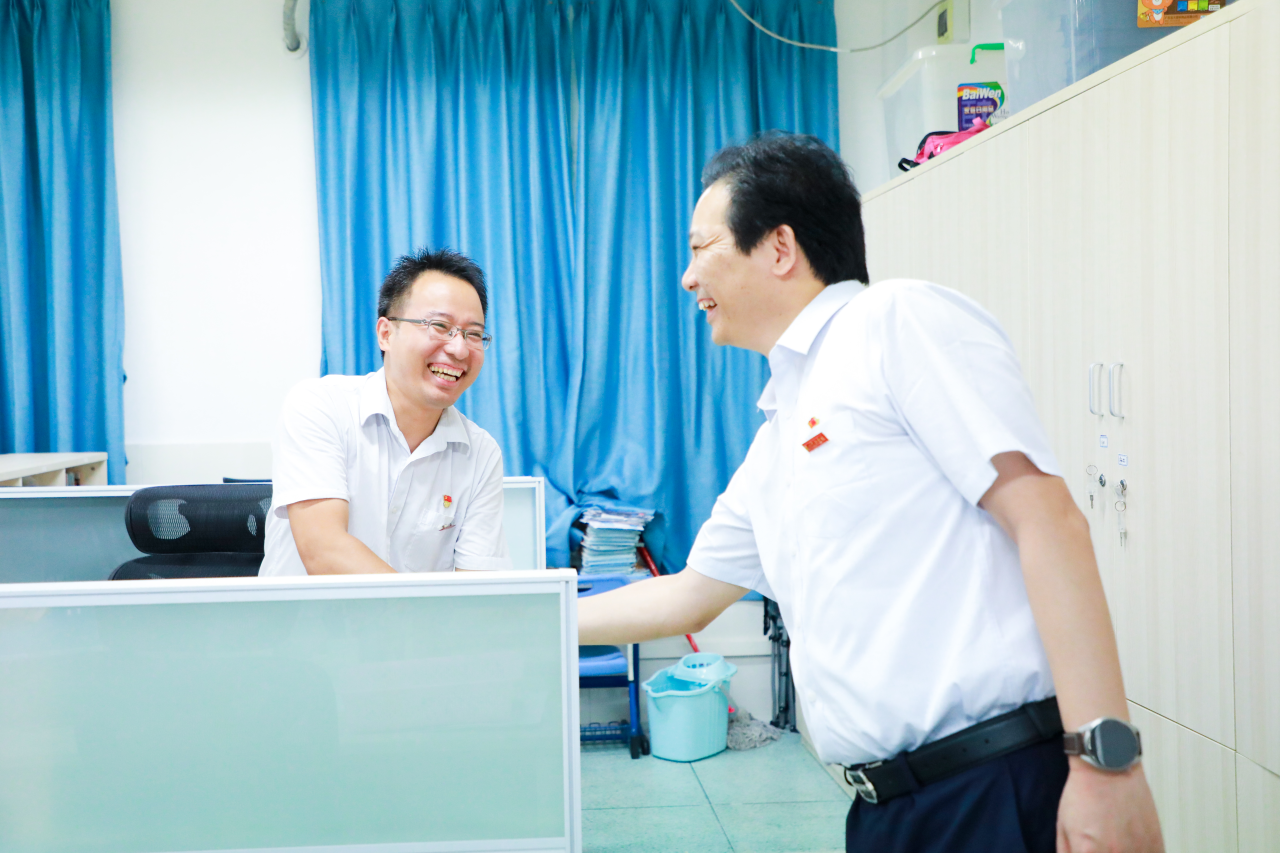 8月9日上午,校党委书记、高中园联合党委书记夏育华到深圳实验学校高中园调研并看望慰问奋战在园区首届高三备考第一线的教职工。高中园联合党委副书记、总校长李震宇陪同调研。
