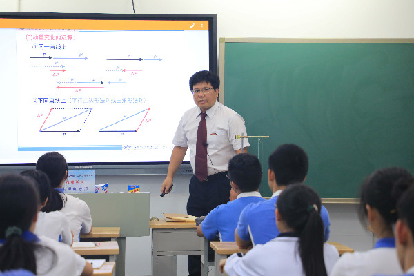 名师有“范儿”。17位送课教师,有荣获2019年第二届广东省中小学青年教师教学能力大赛初中数学组一等奖第一名的中学部唐丽艳老师;有韩国教育学博士,数学教育专业背景,立足严密的数学推导和建模的高中部迟菲老师;有阳光亲和,善于与学生互动,“聊天式”教学,把一个陌生的班级真正调动起来,课堂气氛高潮迭起的乔战胜老师;有北大高材生、来自初中部的余明发老师,不疾不徐、娓娓道来,追求“文本”与“生本”,以锤炼一节层次丰富的语文课为旨要;有激情奔涌,幽默风趣,能有效带动学生探究学习的初中部毛俊哲老师。还有一位特殊的顶课教师,来自坂田部的郑碧莲老师,她顶替中学部因身体原因无法按时送课的郑楚洁老师,在关键时刻,主动领命,上了一节《道德与法治》课,赢得了喝彩!