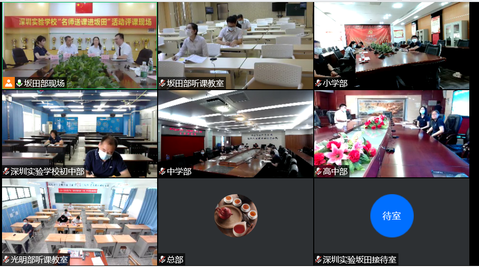 本次“名师送课”活动,采用现场直播方式进行。由光明部和坂田部设主会场,主会场为教学现场1个,评课现场1个,收看听课、评课直播现场1个。其他各学部均设听课、评课现场,收看主会场的现场教学和现场评课并参与互动交流。
