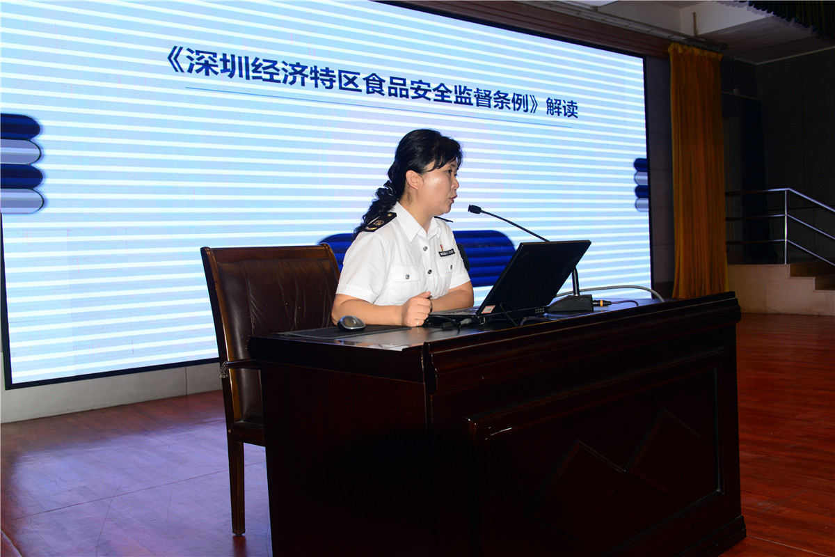市场和质量监督管理委员会食药专家薛燕萍讲师,就《深圳经济特区食品安全监督条例》(2018年5月1日起实施)以及《餐饮服务食品安全操作规范》(2018年10月1日起实施)进行了条例解读和规范培训。龙萍副校长、集团安全主任、集团服务中心主任、各部总务主任、幼教中心分管安全园长等相关管理责任人和各部食堂员工一起130多人参加了培训活动。