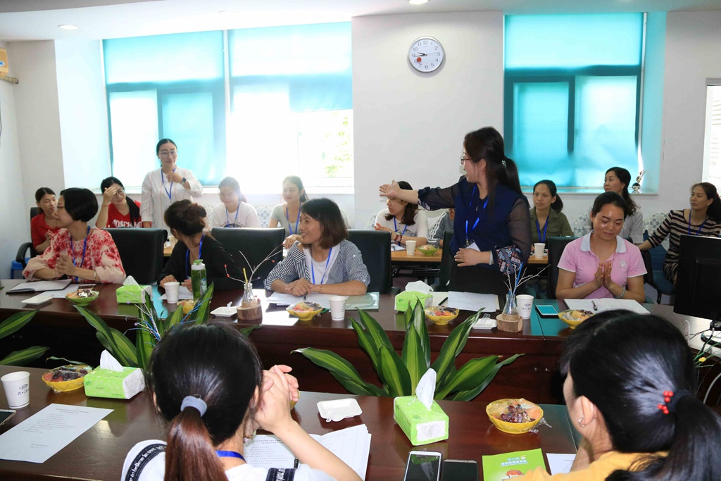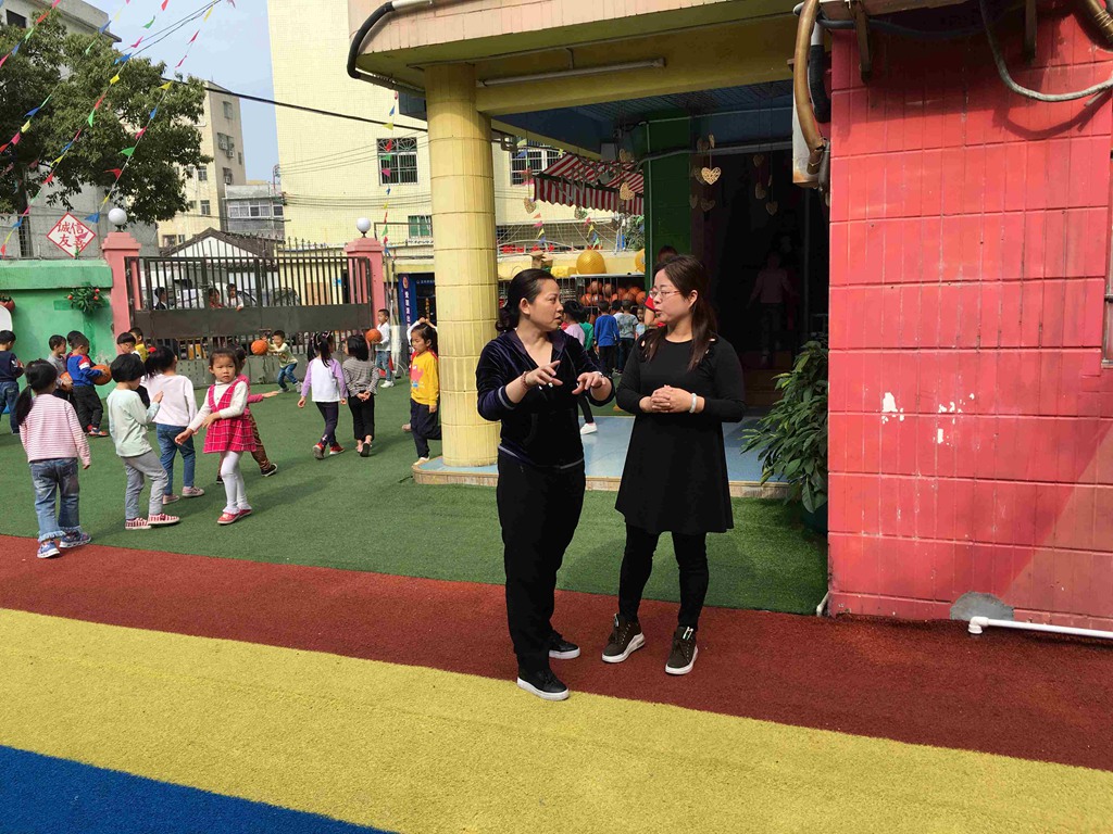 富鑫幼儿园教学园长梁园长从日常管理、保教工作和资源三个方面给大家分享了幼儿园受帮扶的历程,用大量的照片跟大家展示了受帮扶以来活动室、户外游戏区的改变和老师的成长。