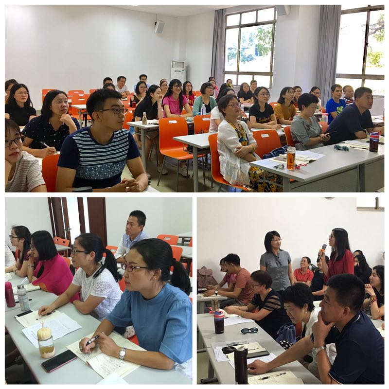 五天的学习,参加培训的36名教师非常珍惜来之不易的高端培训机会,认真聆听,积极互动,将教授专家们的精华不仅记录在笔记本上,更凝聚成不断发展的力量。九场讲座都精心设计,具备科学前瞻性,操作实效性。首先,从新的教学形式入手,引导教师充分利用视频教学资料,通过“述课”提升教师的综合素养和课堂教学质量;通过博物馆与中小学进行校馆合作模式,充分挖掘教育教学资源,引领学生结合各个学科相关的博物馆进行,发现式探索式的学习。其次,从新的教学策略入手,借助小组合作学习,因“类”、因“能”施教问题,转变学生的学习方式,使教师从知识的传授者,转变为学生学习的引导者,组织者;借助具体的教育情境,使老师实现从学生行为的管理者到引导者的转变。最后,从新的教育形势入手,运用科学实证精神,结合认知发展心理学,寻找教师的发展内驱动力,规划教师的专业发展路径;教师要广泛阅读,全面提升科学素养,人文素养,踏踏实实立足教育实践,开展教学科研,走上教师专业成长之路。