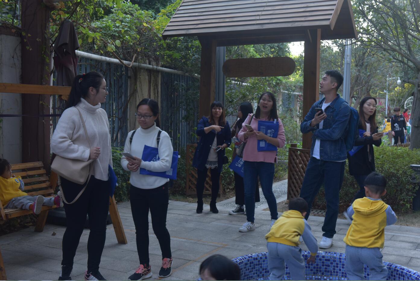 在户外,来宾们观摩了大班幼儿带小班弟弟妹妹的户外混龄游戏。在舞台上、草地上、沙池里、娃娃家、涂鸦区、建构区里……处处都有孩子快乐的笑声、专注游戏的画面,亦有大手牵小手的温暖。看着孩子们自发、自主参与游戏,她们表示我园的教育教学做得踏实、深入,值得学习和借鉴。