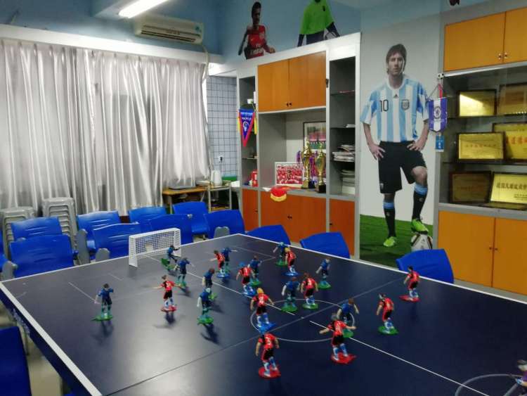 在学校的“足球之家”里,记者除了看到一座座金闪闪的奖杯外,还看到了一桌子足球玩偶——这是教练用来给球员讲解技战术的。谈及在实验学校足球队最大的收获,很多队员都不约而同地谈到了一点:教练给他们灌输的,是最先进的足球理念。当身体无法与专业选手对抗时,他们有更“犀利”的“武器”——头脑。所以近年来球队捷报频传,先后获得“谁是球王”全国争霸赛季军,全国青少年足球锦标赛U13、U14冠军,广东省“省长杯”冠军,“闽粤港澳”埠际锦标赛冠军。