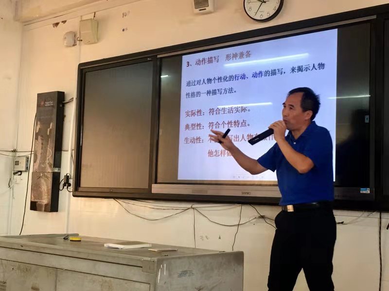 封清华老师执教高一年级语文作文课:“写人要凸显个性”。封清华老师以自己从教27年,带过2000多名学生,却只能记住几百名学生开场,激发同学们兴趣,导入新课——通过典型事件、抓住人物特征写出人物个性。课堂上,封老师带领同学们复习了肖像、语言、动作等人物描写方法,着重探索人物心理描写技巧。课的后半段,封老师要求学生们结合情境,写出他“第一次来河池高级中学上课”的心理。学生当堂练习,老师当堂点评,让学生真正体会到了心理描写怎样让人物鲜明起来、生动起来、丰满起来。