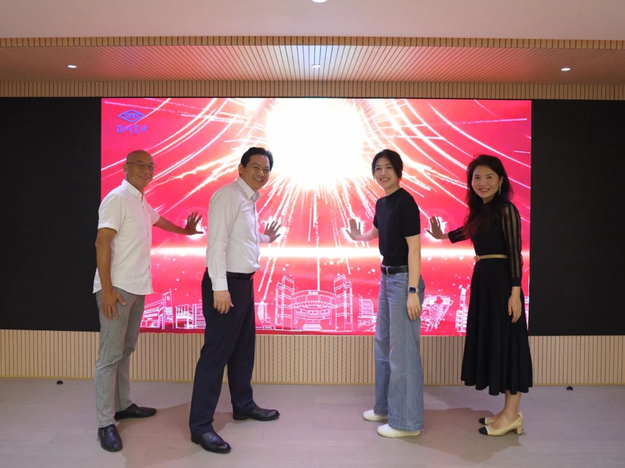 深圳实验学校党委书记夏育华、深圳市教育发展基金会邓夏、校友代表阮斌、腾讯公司代表李芳仪登台,共同启动象征母校情怀、校友力量、企业协作与社会支持的四道光柱,共同开启校友服务平台小程序上线的大幕!