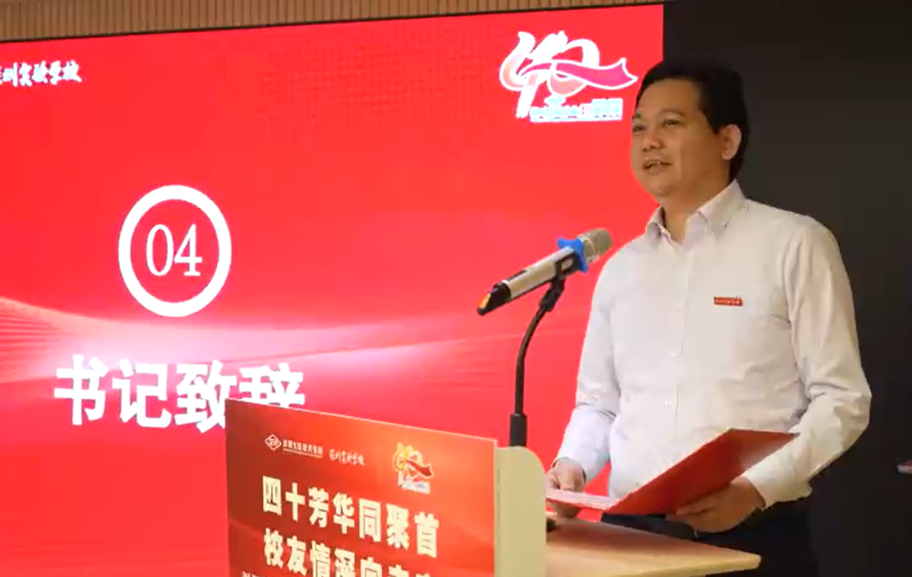 夏育华书记深情回顾道,四十年前,第一批实验人从天南海北汇聚到笔架山下,励精图治要培养一批中华民族的脊梁。四十年来,我们实施以爱国主义教育为基础的健全人格教育,成为了深圳乃至全国基础教育的旗帜和窗口。四十年后,我们看到一大批校友已经成长为各行各业的领军人才,以敢为人先的姿态书写着母校的荣光。