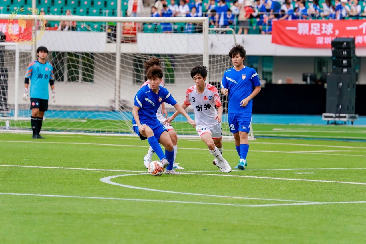 压轴的我校与南山外国语学校11人制巅峰秀,更是精彩不断,场下的观众加油声不断,场上每一次攻防都扣人心弦,简直是一场视觉的盛宴。这场赛事,不仅有足球的热血激情,更传递出团结、拼搏的精神,让我看到了青少年该有的蓬勃朝气,也深深爱上了足球运动。