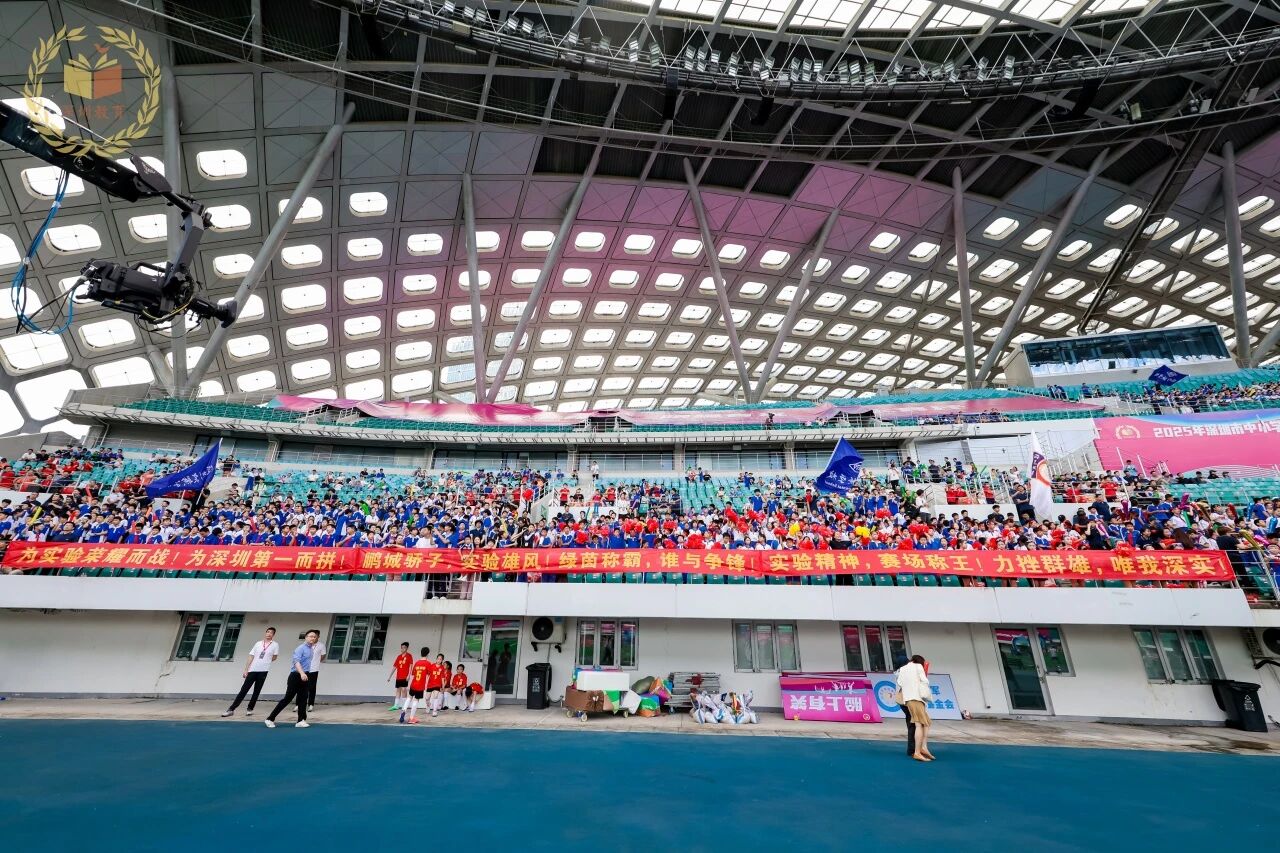 我是坂田部初中足球队的一员,今天我有幸坐到了深圳湾春茧体育场的观众席,观看了激烈而精彩的2025年深圳市中小学足球班级联赛总决赛。
