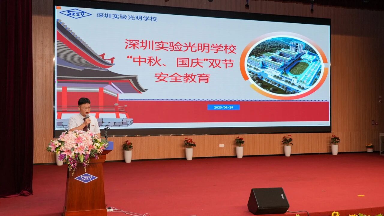 9月29日,深圳实验光明学校在报告厅隆重举行“实光学子贺华诞,青春韶华共月圆”主题晨会。