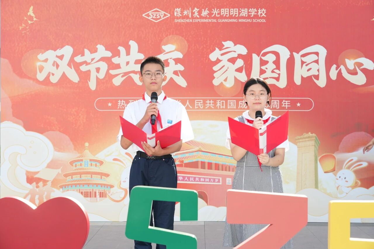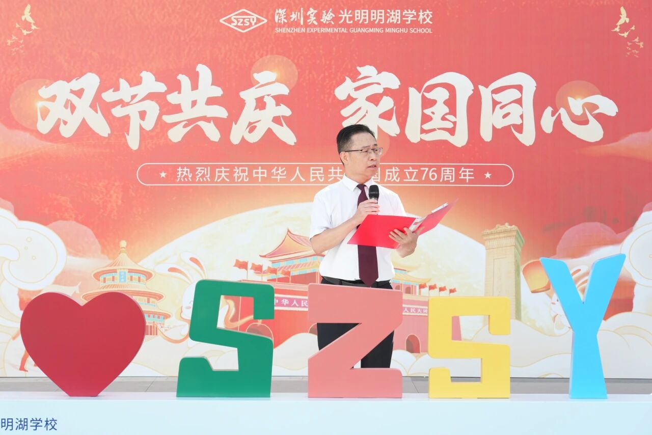 硕果盈枝,山河披锦绣;盛世华诞,神州共欢腾。为庆祝中华人民共和国成立76周年,深圳实验教育集团各学部于2025年国庆前夕纷纷举办主题活动,共同抒发对祖国母亲的深情告白,对盛世团圆的美好祝愿。