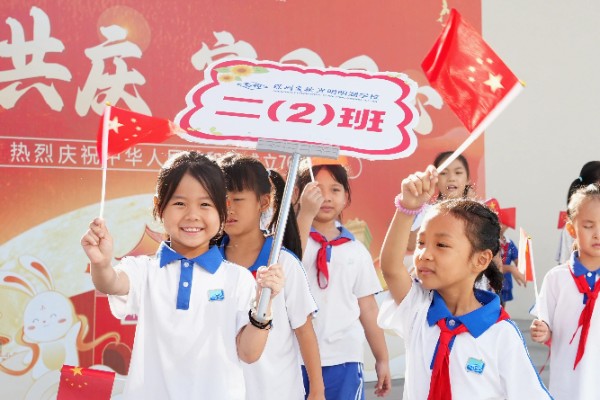 9月30日上午,小学部“盛世中国,少年同行”国庆节庆祝大会热烈启幕,师生共贺祖国76华诞。