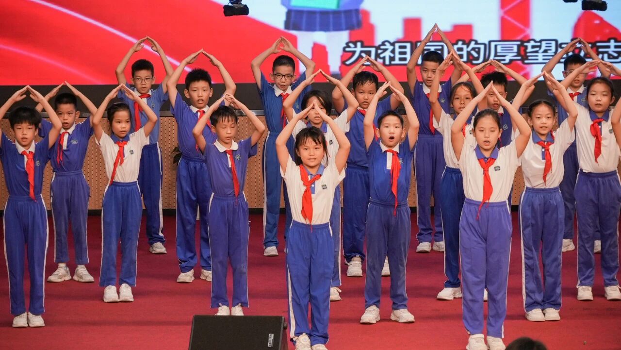 国旗下,五(1)班学生代表曲熠抒发表了真挚动人的演讲,从“爱祖国、爱学校、爱班级、爱家庭”四个维度,阐述了新时代少年践行爱国主义的实际行动。随后,五(1)班全体同学带来了精彩节目《祖国有我》。同学们精神饱满,以手势舞与合唱相结合的形式,用指尖的舞蹈与嘹亮的歌声,深情演绎了对祖国的热爱与承诺,展现了少年儿童的蓬勃朝气,将现场氛围推向高潮。