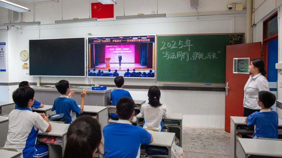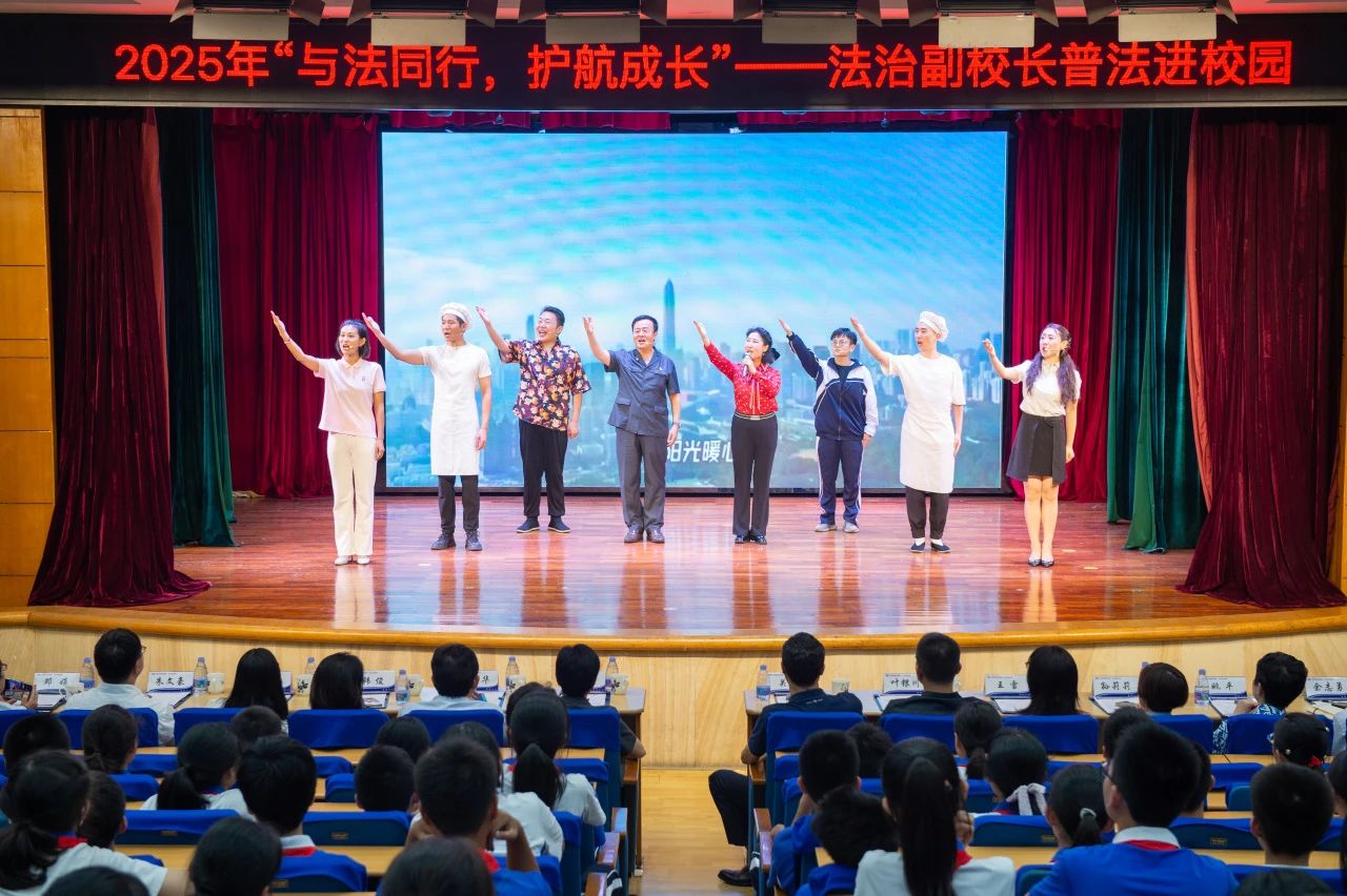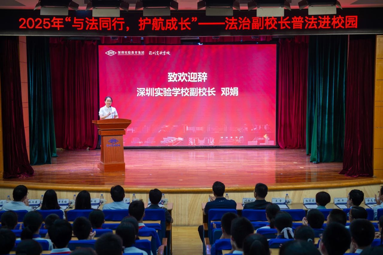 为深入贯彻落实习近平法治思想,弘扬法治精神,深化青少年法治教育,增强青少年法治意识,深圳市中级人民法院主办的2025年“与法同行,护航成长”法治副校长普法进校园活动于6月16日在我校中学部隆重举行。