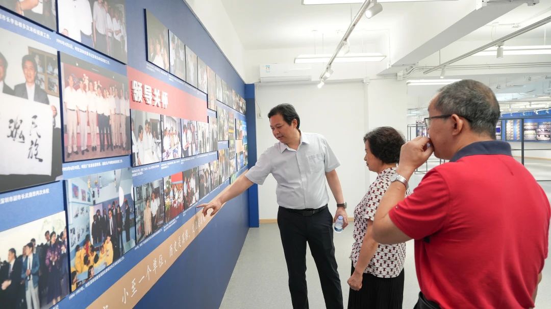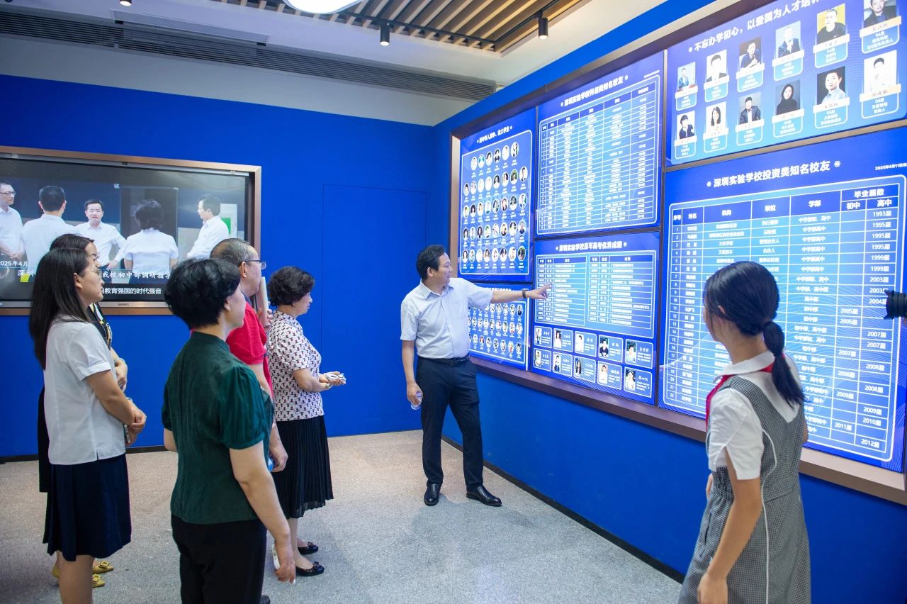 在校史馆,学生讲解员以生动的解说带领大家领略四十年的教育史诗。从1985年创校时金式如校长提出的“实施以爱国主义教育为基础的健全人格教育”,再到夏育华书记的“五才”办学方略,历任校领导的理念诠释了实验精神的传承创新。在“知名校友展示区”,夏书记介绍道,实验学子始终以“健全人格”为底色,与特区“敢为人先”精神同频共振,在学术、科技、教育、金融、艺术等领域成就斐然。金会长不禁赞叹,校史馆以“小切口”映射大时代,用鲜活史料让教育初心可触可感。