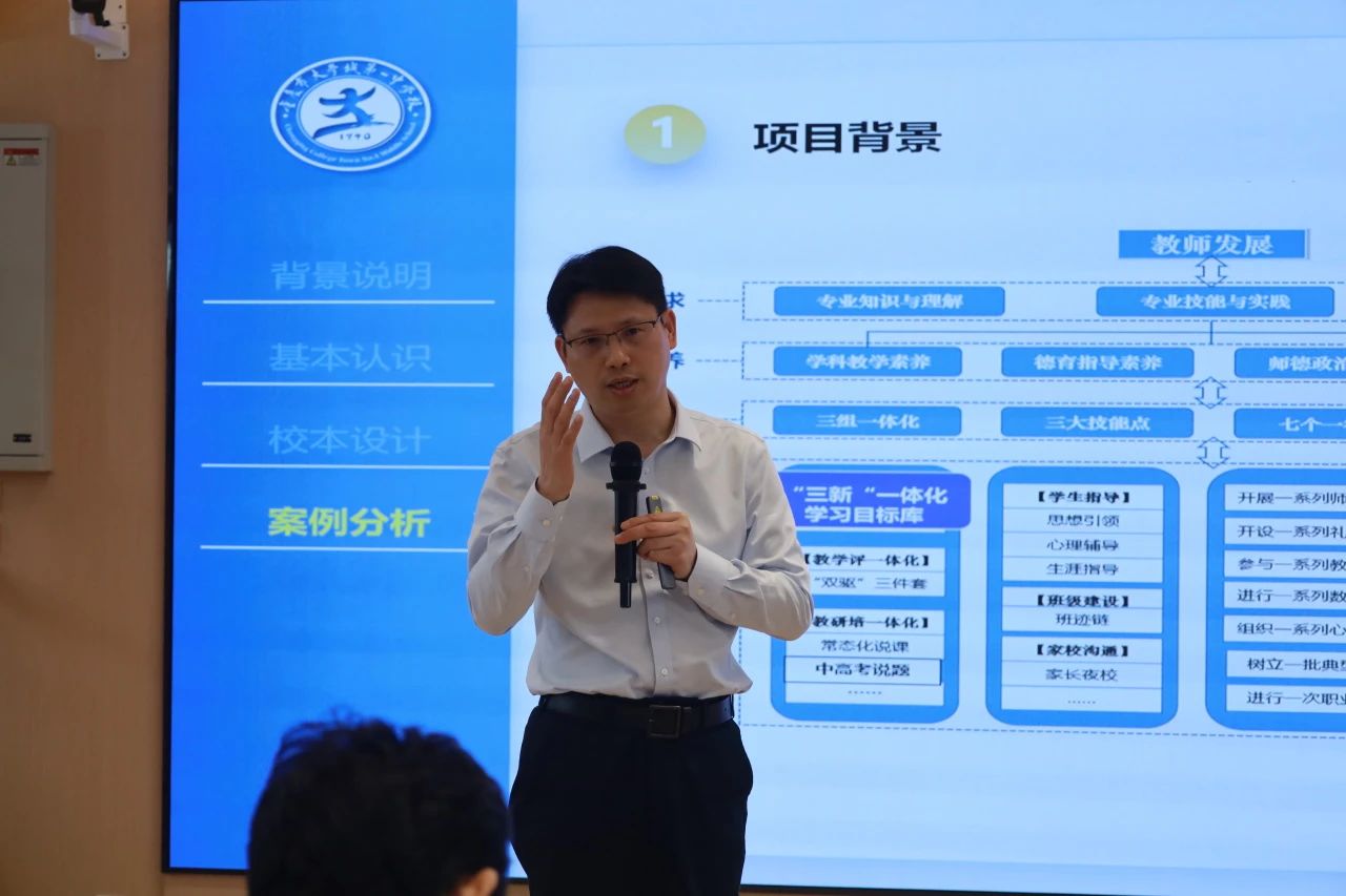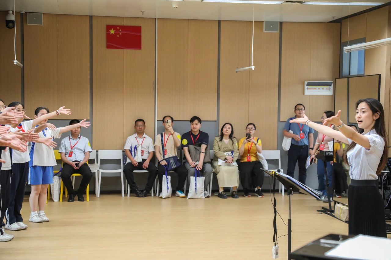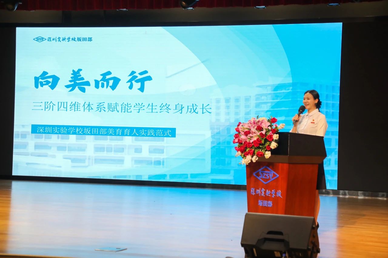 坂田部初中学生处副主任林璐介绍了学校构建“普及·浸润-特长·赋能-专业·突围”三级进阶体系,通过课程奠基、活动拓展等四大维度形成立体美育生态。高中部副部主任李阳分享了青年教师培养策略,重点解读“1358计划”:通过文化浸润、师德引领等八大举措,系统构建“一年适应、三年胜任、五年突破、八年成熟”的成长路径。