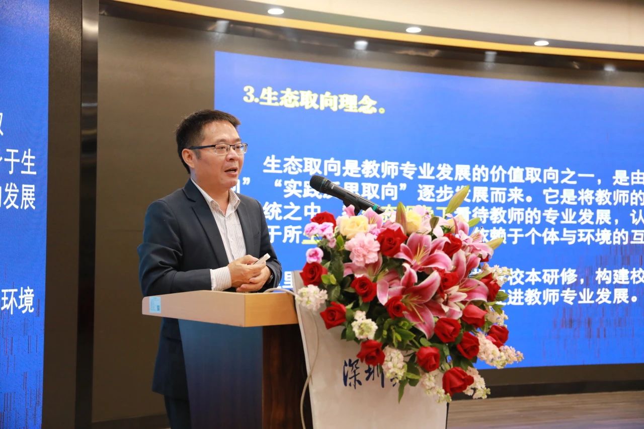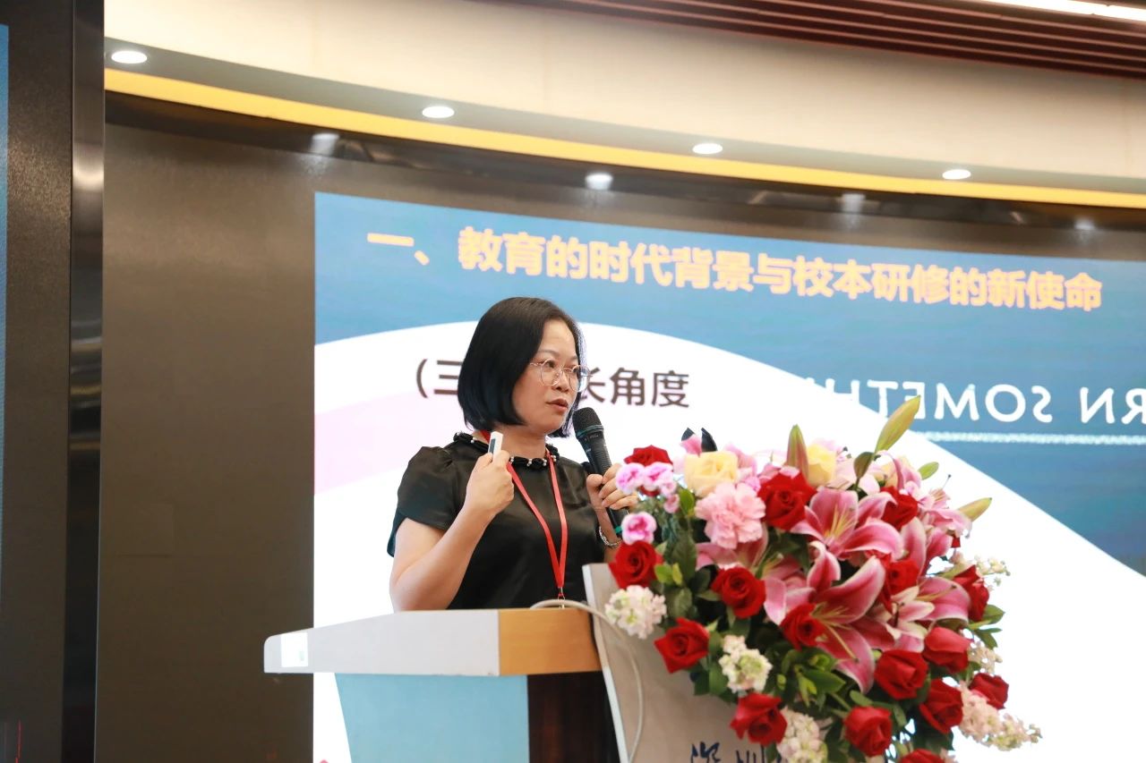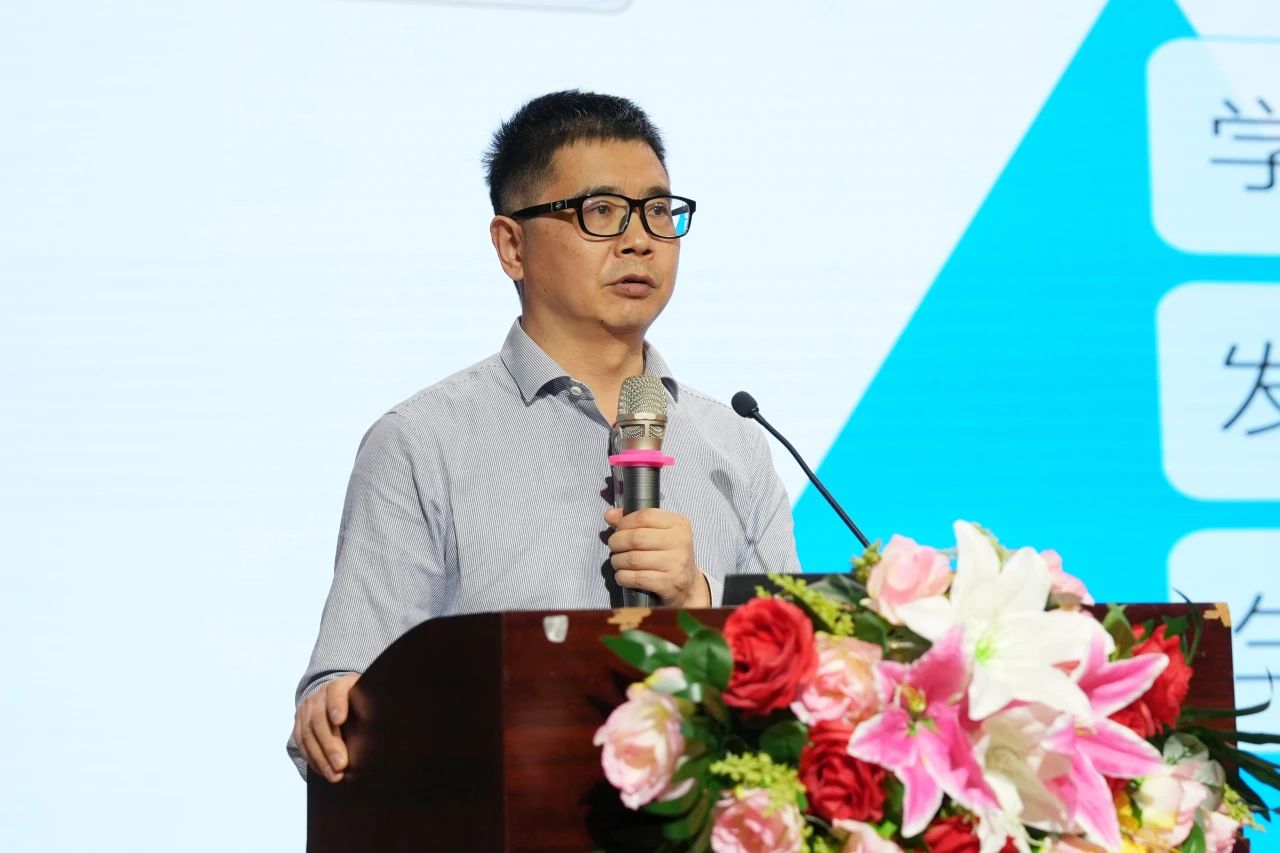 在专家分享环节,深圳市蛇口育才教育集团党委书记姚晓岚分享了学校通过人文氛围、育人方式、学校风气等方面的建设,实现教育系统性、多样性、自组织性和可持续性。广州市执信中学党委书记陈民分享了学校构建了一个多元立体的校本研修团队,通过科研组、备课组、师徒结对和青年教师联盟等促进教师成长。威海市荣成市幸福街小学校长张启胜从课程设计理念、课程实施策略、课程实施成效三方面分享学校深化课改、探索创新教育的路径。东莞市松山湖第一小学校长蔡敏胜介绍了学校实施扁平化管理,通过创新研究设计、问题导向学习及项目化教学,促进学生全面发展和教育评价革新。珠海市九洲中学党总支书记姜楠强调学校应根据教师的不同需求和成长阶段定制研究模式,通过信息技术平台支持,促进教师专业发展和教学改革。佛山市顺德区启智教育学校校长申承林强调教育者需具备专业能力、态度和解决问题的能力来应对挑战,培养特殊儿童成为社会中有尊严的个体。阳江市阳东区金湾学校校长李芬爱谈到学校通过构建乐教育体系、推行教师专业化发展,强调课题研究和实践活动的重要性。顺德区华南师范大学附属乐从小学校长谢立清讲述了学校通过校本研修实践,成功解决合并后的挑战,实现从混乱到规范,再到引领的发展路径。荔园外国语教育集团党委书记柳中平提出学校推行自然生长教育,提升学生的文化感知力,培养学生的家国情怀、全球视野及内在成长力,应对AI时代对教育的挑战。顺德区京师励耘实验学校校长彭志洪分享了教育创新与技术融合的趋势。