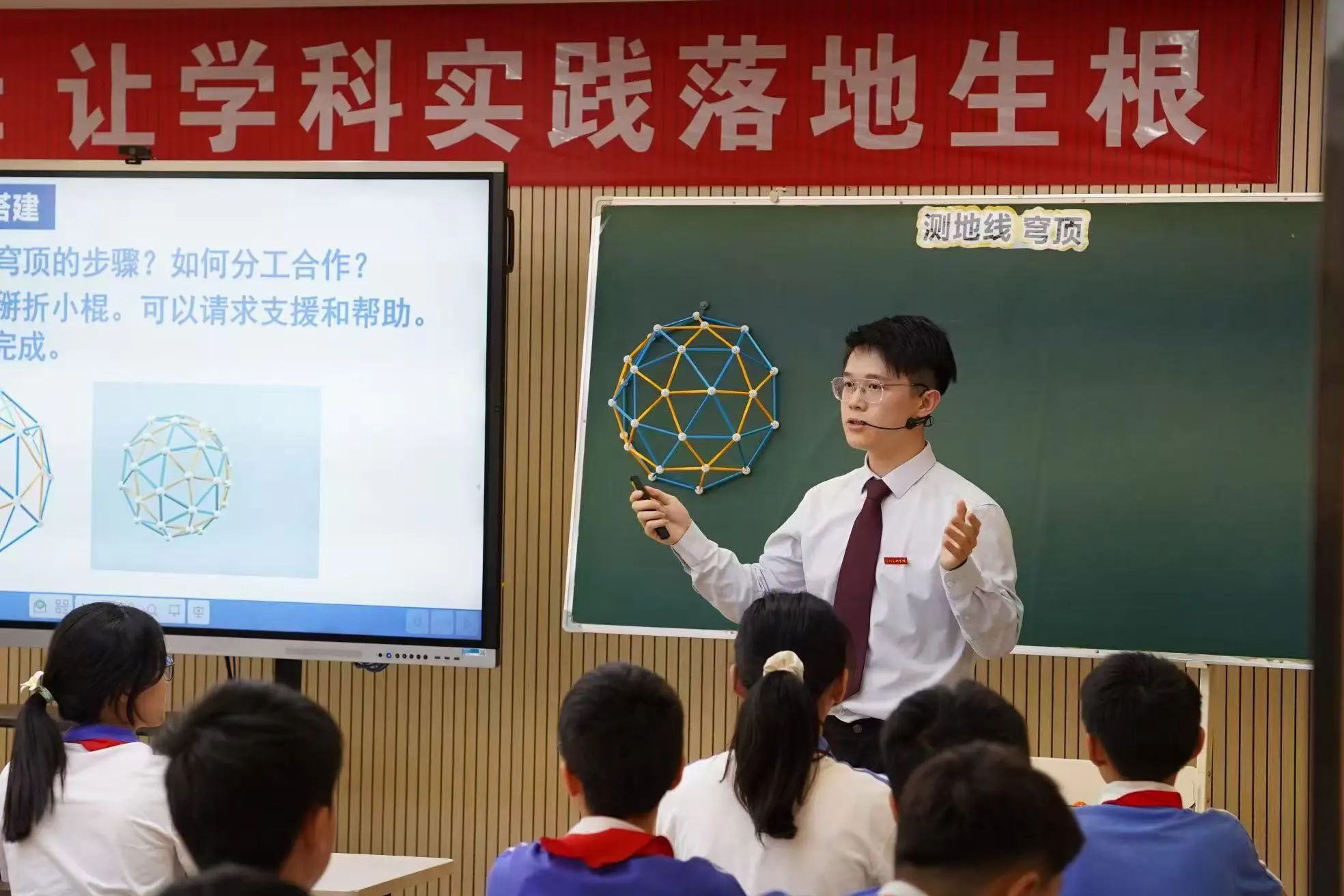 在小学部观摩环节,与会嘉宾通过王一岳老师执教的二年级跆拳道课程、牟艳丽老师指导的四年级曲棍球专项课程,以及陈可嘉、谷龙基老师带领的六年级篮球课堂,深度了解坂田部“普及+特色+专业”体育教学模式。曾振业老师执教的《测地线穹顶》和数学学科主任谢岳兵老师的学具操作、模型搭建等真实课例,系统阐释“数学实验”课程体系,生动展现“做中学”教育理念的实践深度。