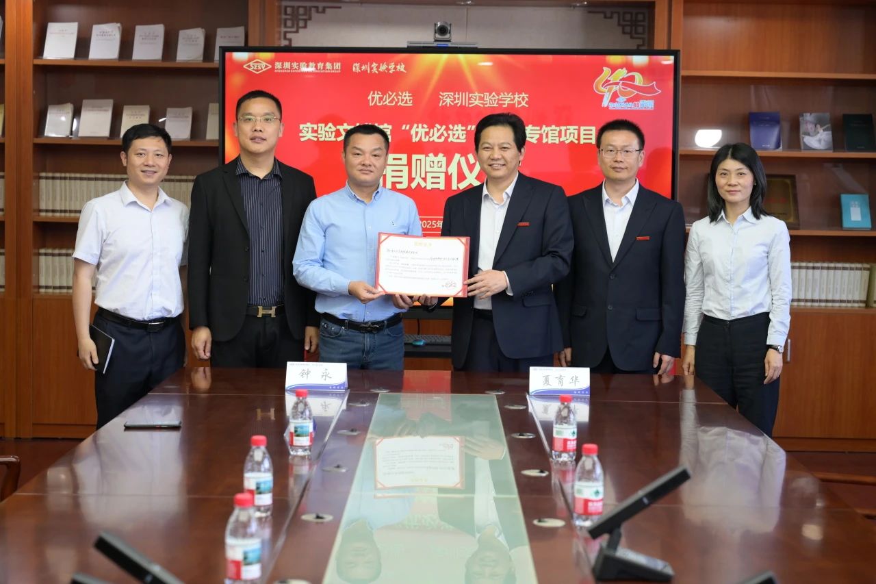深圳实验学校副校长余志勇与优必选深圳地区负责人张洋签署合作协议。深圳实验学校党委书记夏育华向优必选高级副总裁钟永颁发了捐赠证书。深圳实验教育集团总部相关工作人员共同见证。