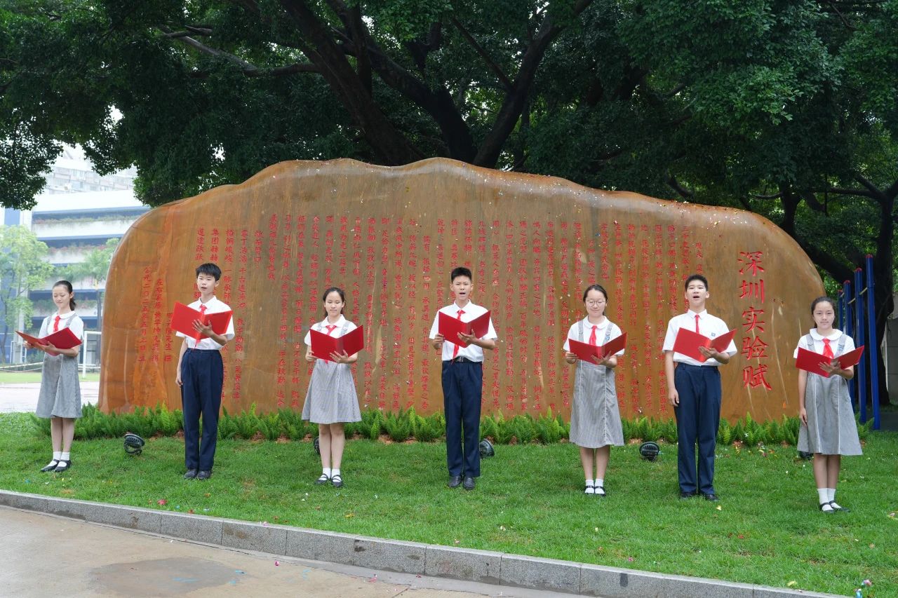 2024年3月,深圳实验学校面向全球发起《实验赋》征集活动,以文载道、以赋铭志。活动得到社会各界热烈响应,共收到29篇投稿作品。2024年7月,经学校邀请相关领域的专家和教师精心评选,中华诗词协会、中国联学会会员田兴隆先生所作的《实验赋》脱颖而出,其文采斐然,格局恢弘,既追溯“改革春风中所诞,重点犹之;施教澍雨里以滋,高标是即”的办学历程,又展望“杏笺巨构已开篇,鸿路远征仍在策”的未来愿景,更以“梧桐峻峻,一脉承邹鲁;桃李欣欣,三更读序庠”的铿锵之句,彰显实验人为民族育脊梁的使命担当。