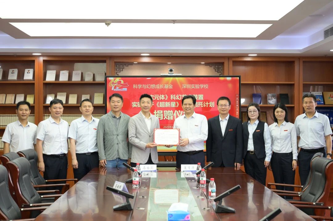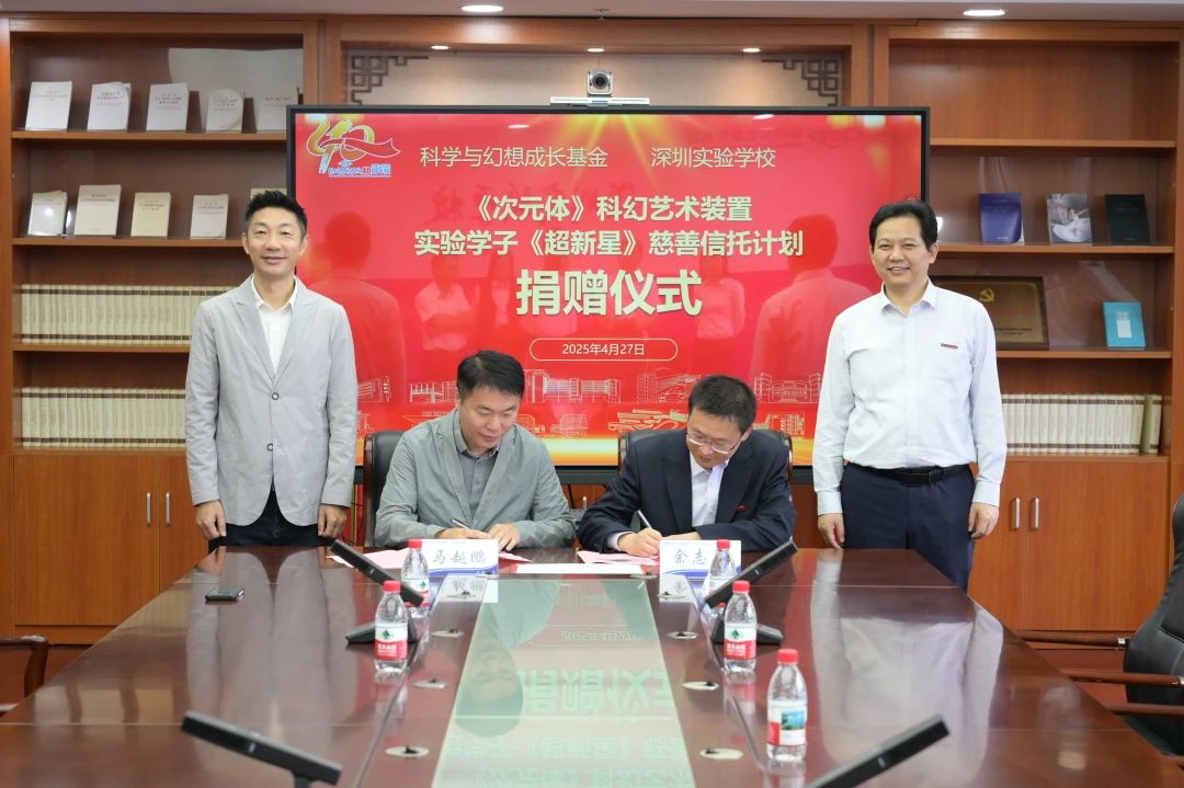 2025年4月27日,深圳实验学校与科学与幻想成长基金举行捐赠仪式,就科学与幻想成长基金向我校捐赠“次元体”科幻艺术装置及设立实验学子“超新星”慈善信托计划达成协议。