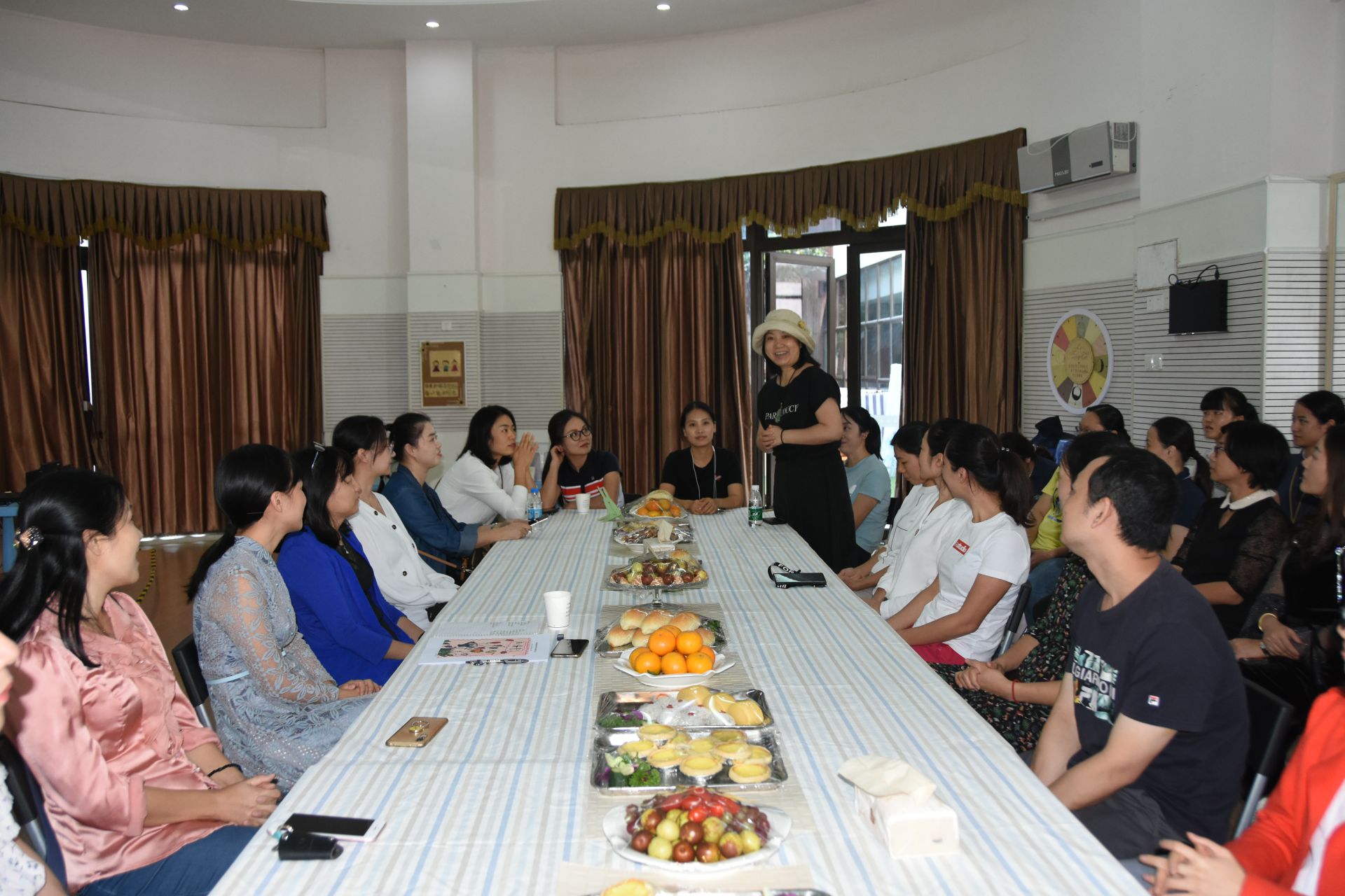相遇相识是一种难得的缘分,每一次家委会成员的相聚都像亲人般的团聚。一句亲切的问候,一个温暖的微笑拉近了彼此之间的距离。实验星河时代幼儿园家(伙)委会议在黄园长和各班家(伙)委成员及各班班主任的自我介绍中拉开了帷幕。
