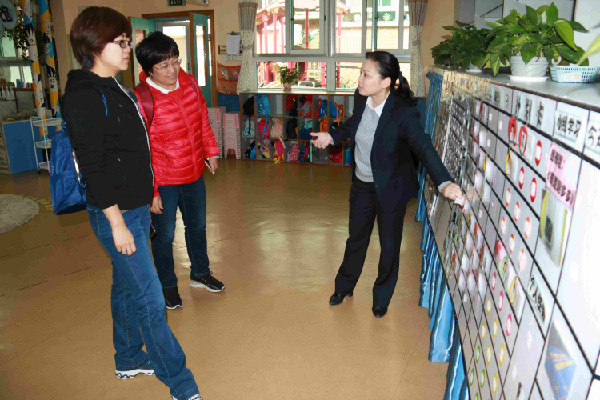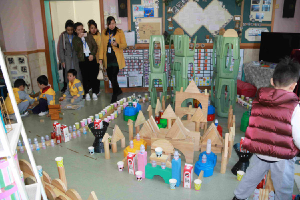 早上签到后,老师们在小礼堂集中,房淑芬助理给大家简单介绍了活动安排和我园的课程特色,鼓励大家带着问题和思考去察看。接着老师们有序进入班级,实地观摩我园的共享区域活动和幼儿学习环境,蕴含教育价值的晨谈环节、幼儿自主、专注的游戏状态、良好的师幼互动以及我园温馨雅致、自然丰富的学习环境,让老师们赞叹不已。