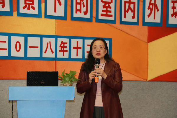 程蓉园长给大家介绍了幼儿园的基本情况以及共生课程背景下室内外环境创设的经验做法;张静老师给大家带来了《幼儿园室内外区域环境一体化的含义》专题讲座。