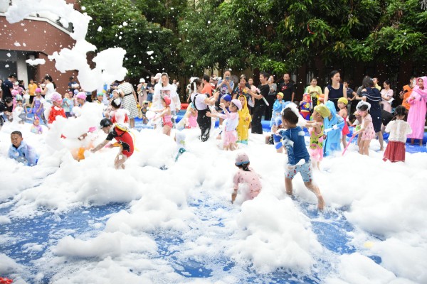 一场盛大的“梦幻泡沫·嘉年华”活动拉开了帷幕,中班和大班的小朋友、大朋友们在大大的水池、泡泡的海洋中尽情的舞动、尽情的燃烧、尽情的狂欢!