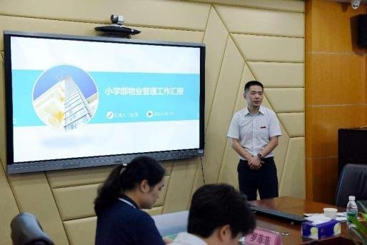 中学部总务处副主任牛志强介绍了中学部的小型工程管理情况,详述了多项正在进行的工程项目,如教学楼篮球场的升级改造、架空层篮球场洗手间及前厅的改造等,充分展现了学校在改善基础设施方面的决心和行动。