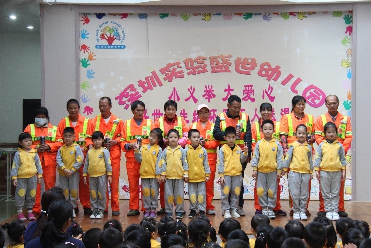 通过今天活动,让小朋友了解环卫工人的工作,尊重他们的劳动,懂得去关爱身边的人,爱像绢绢的流水,滋润着孩子们的心田。(文、图/盛世幼儿园)