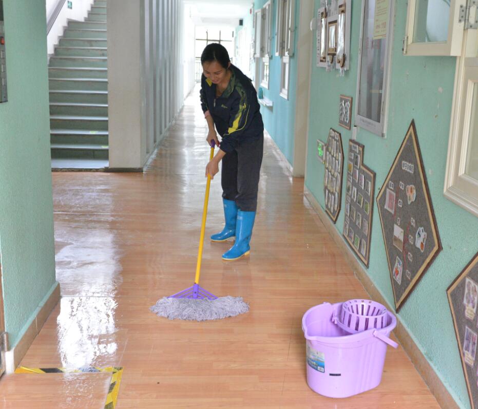 “洗”旧迎新,经过一个假期,教室里沉落了些灰尘,为给孩子一个整洁干净的环境,忙碌的身影处处可见。操场上散落一些枯叶、体育器械上的一层层的尘土,在老师们的努力下,教室里、户外环境和体育器械都焕然一新,迎接宝贝们回家。