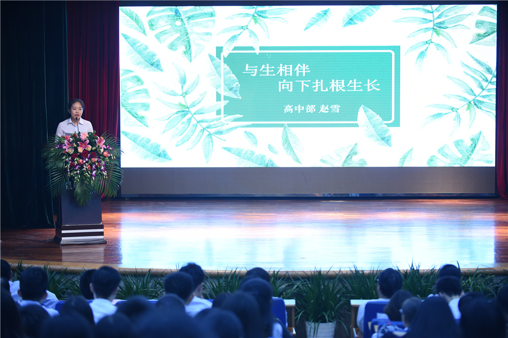 最后,衷校长发表了热情洋溢的讲话。他首先表达了对青年教师的肯定,对各学部在青年教师培养上付出的努力与收获的成绩的肯定。他提出,教师队伍是一个学校的核心竞争力,实验学校最宝贵的东西就是它的教师队伍,是这个队伍多年来历练、铸就的实验文化。学校将最近几年作为教师队伍建设年,尤其是作为青年教师成长年。学校愿意为青年教师搭建平台,促进青年教师的快速成长。