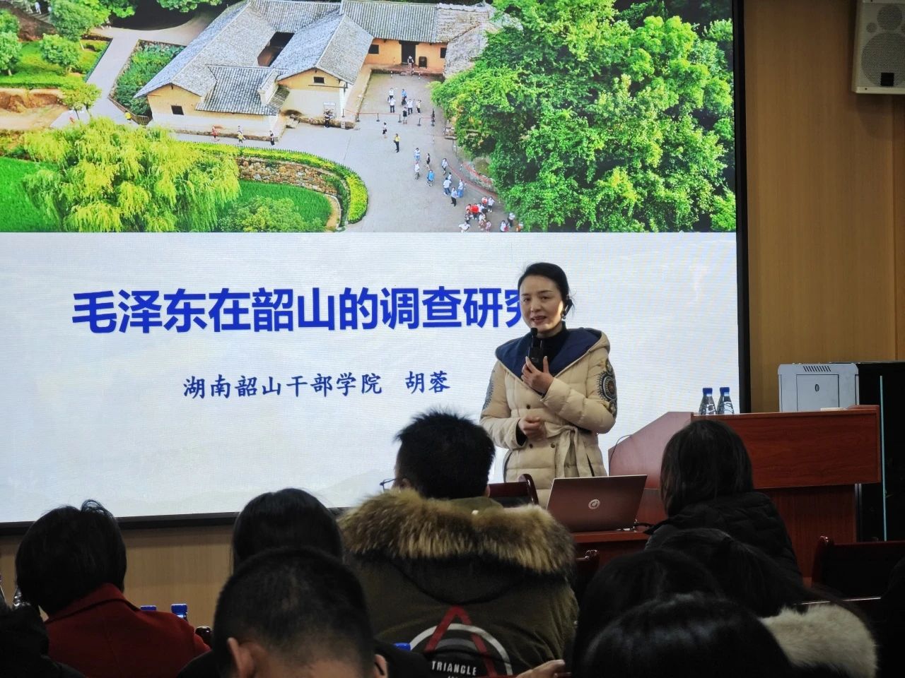 随后,学员们聆听了胡蓉老师的《毛泽东在韶山的调查研究》专题报告,并围绕“在毛泽东考察韶山农民运动的现场教学中有哪些收获”“新时代新征程,如何向毛泽东学习调查研究”两个问题现场展开了讨论与交流。